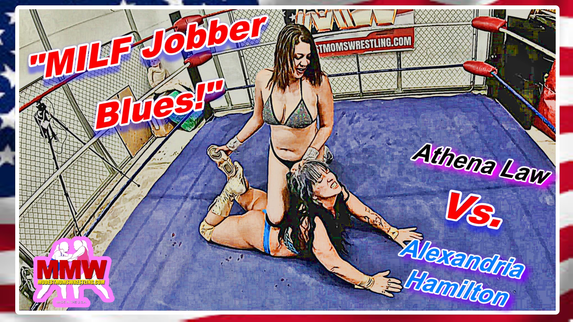 The girls are thong’d up and ready to lockup as Athena Law and Alexandria Hamilton face off in what turns out to be a total squash match as Athena DESTROYS sexy Alex, pummeling the phat-butt jobber with a barrage of pro-style punishment and dirty tactics! Athena trash talks and mocks Alex as she punishes her with vicious hair pulling, bow-&-hairrow, surfboard, camel clutch, hammerlocks, scissorholds, bearhugs, rope work, corner work, low blows and more! Such a painful lesson in humility for Alex as Athena takes her time sadistically obliterating Alex with painful submissions, devastating strikes and ring-shaking slams that echo in the MMW dojo alongside the helpless cries, grunts, moans and groans of Alex! It’s ALL Athena from the opening bell to the final leg-hook pin and victory pose!
