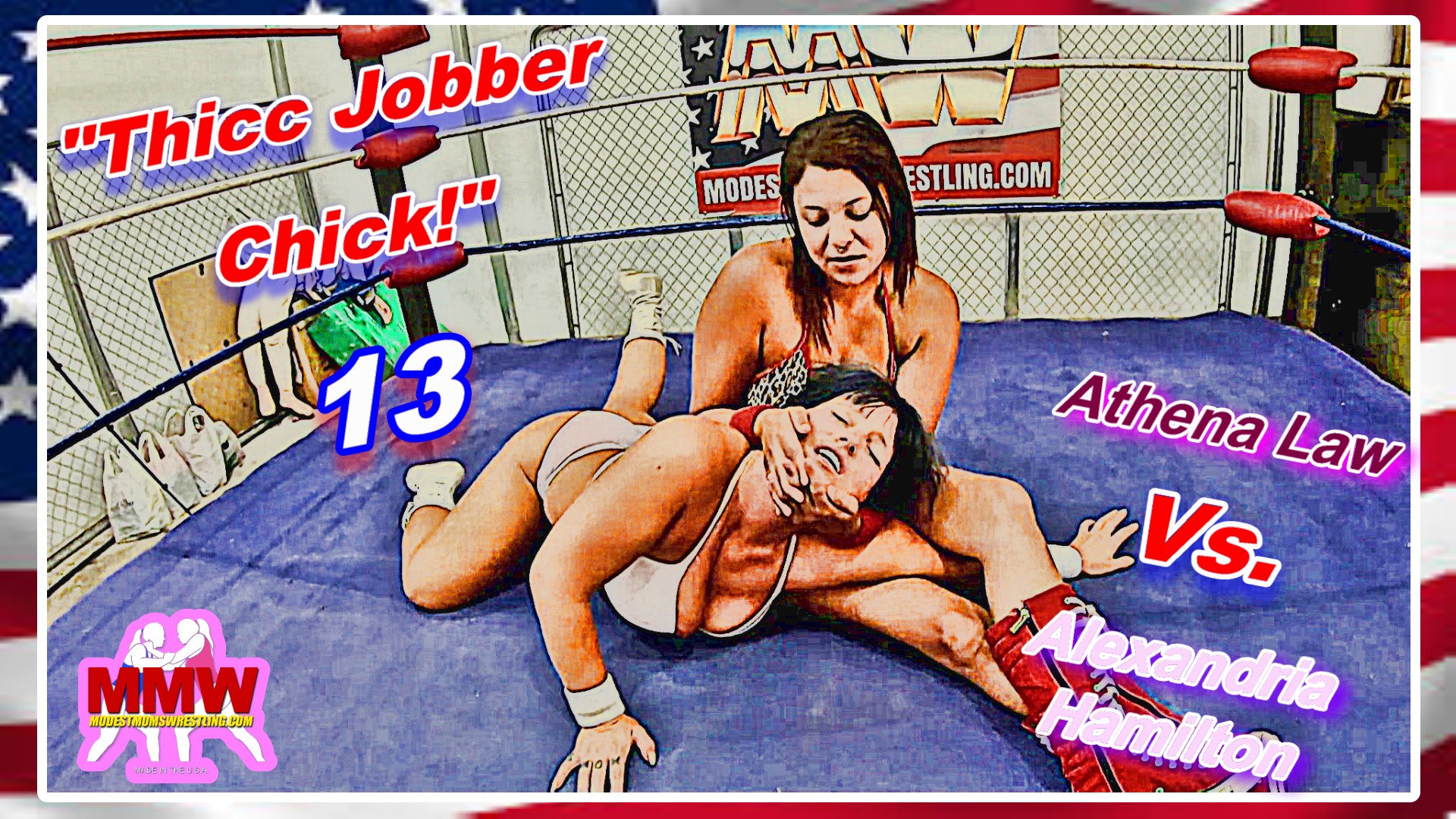 Athena Law gears up to take part in her favorite pass time, beating up her FAVORITE, phat-butt jobber, Alexandria Hamilton! Alex is helpless and hopeless as Athena takes control from the lock up and never lets-up! Vicious hair pulling, armbars, surfboard, hammer locks, bearhug, scissorhold, low blows, corner work, rope work, belly punching, pedigree, snap mare, and more! It’s ALL Athena as she feed Alex a steady diet of punishment with a barrage of pro-style punishment and dirty tactics! Slams, strikes and submissionis, Alexandria’s cries, her moans and groans ECHO in the MMW dojo along with the sound of her sexy body crashing against the canvas, over-&-over! A final leg-hook pin and victory pose seals the night for our pink panty jobber, awarding Athena the W!